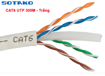 Cáp mạng CAT6 SOTAKO màu trắng đường kính 0.4mm, được bấm sẵn có đầu chụp bảo vệ cùng công nghệ chế tạo đạt chuẩn đảm bảo tốc độ truyền tải dữ liệu đạt tiêu chuẩn 10/100/1000.
